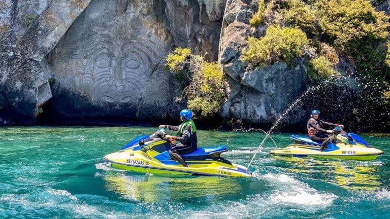 Taupo’s ultimate adventure, experiencing Lake Taupo’s natural scenery, Maori Rock Carvings & many isolated bays and beaches with the added thrill of jet skiing.