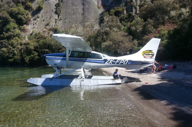 Scenic floatplane flights over Lake Taup?, featuring volcanic landscapes, Huka Falls, geothermal areas & extended flight options. Departures from the lakefront.
