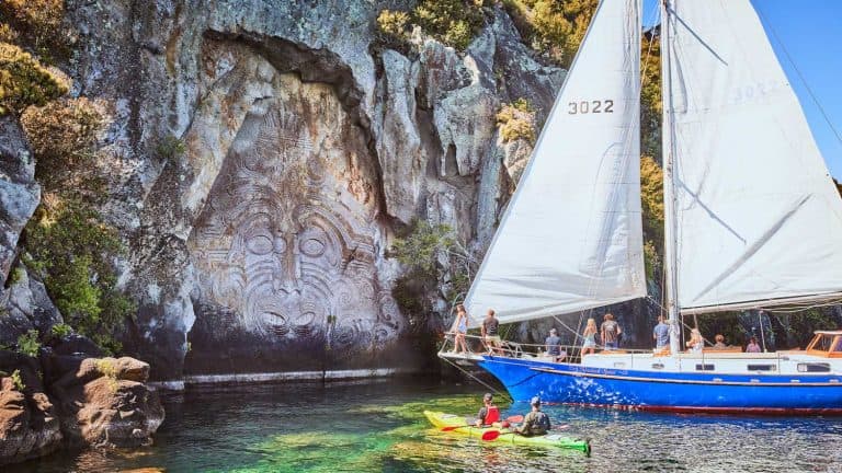Explore Lake Taupo’s Ng?toroirangi M?ori Rock Carvings on a scenic cruise or sailing trip. Enjoy close-up viewing, lake scenery, and cultural insight.