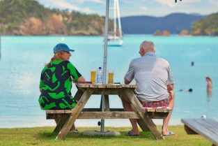 Back at Otehei Bay, recharge at the island’s licensed café and bar.
