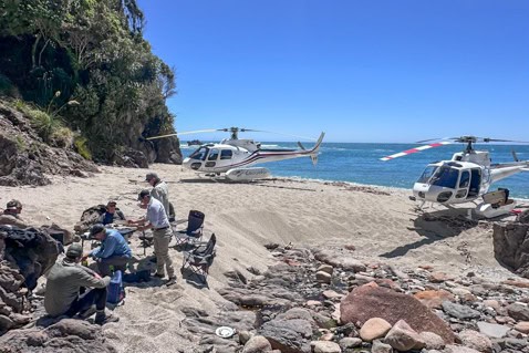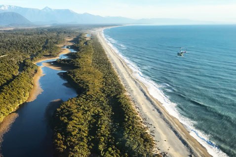 Continue westward to land on a remote West Coast beach beside the Tasman Sea — a dramatic contrast to the alpine world behind you. Enjoy views of rolling surf, windswept sands, and possibly native wildlife in this untouched coastal setting.
